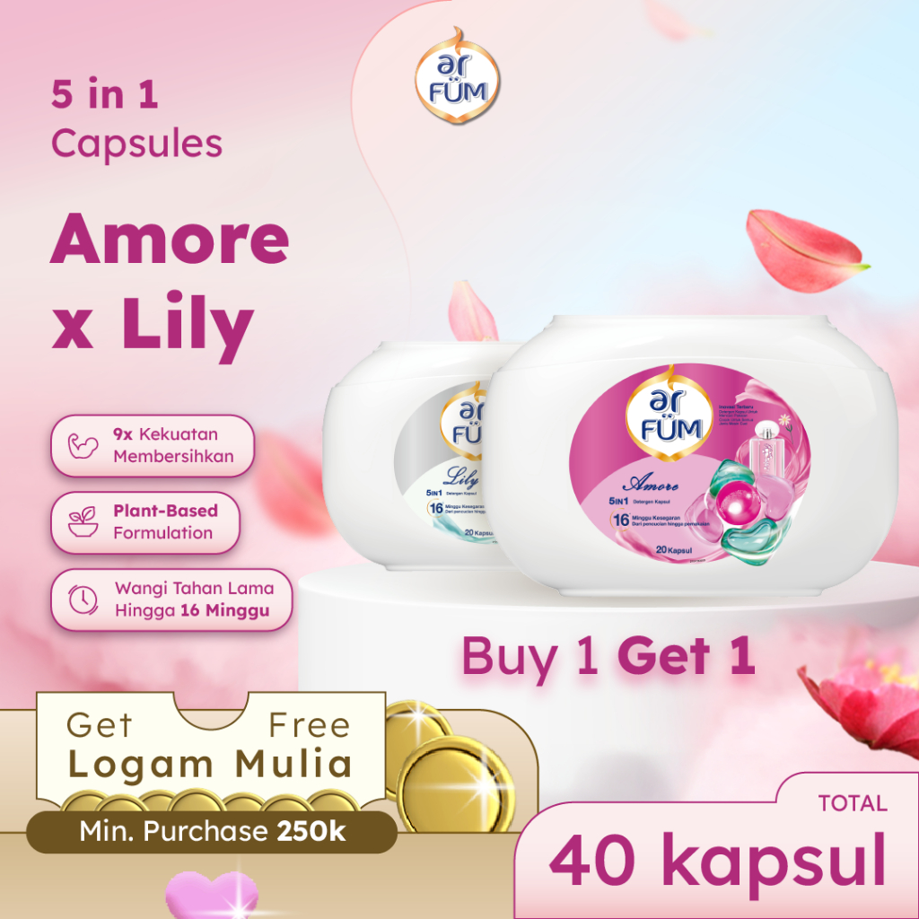 AR FUM 5IN 1 DETERGEN KAPSUL 20PCS - AMORE & LILY - MULTIPACK PACK ISI 40PCS