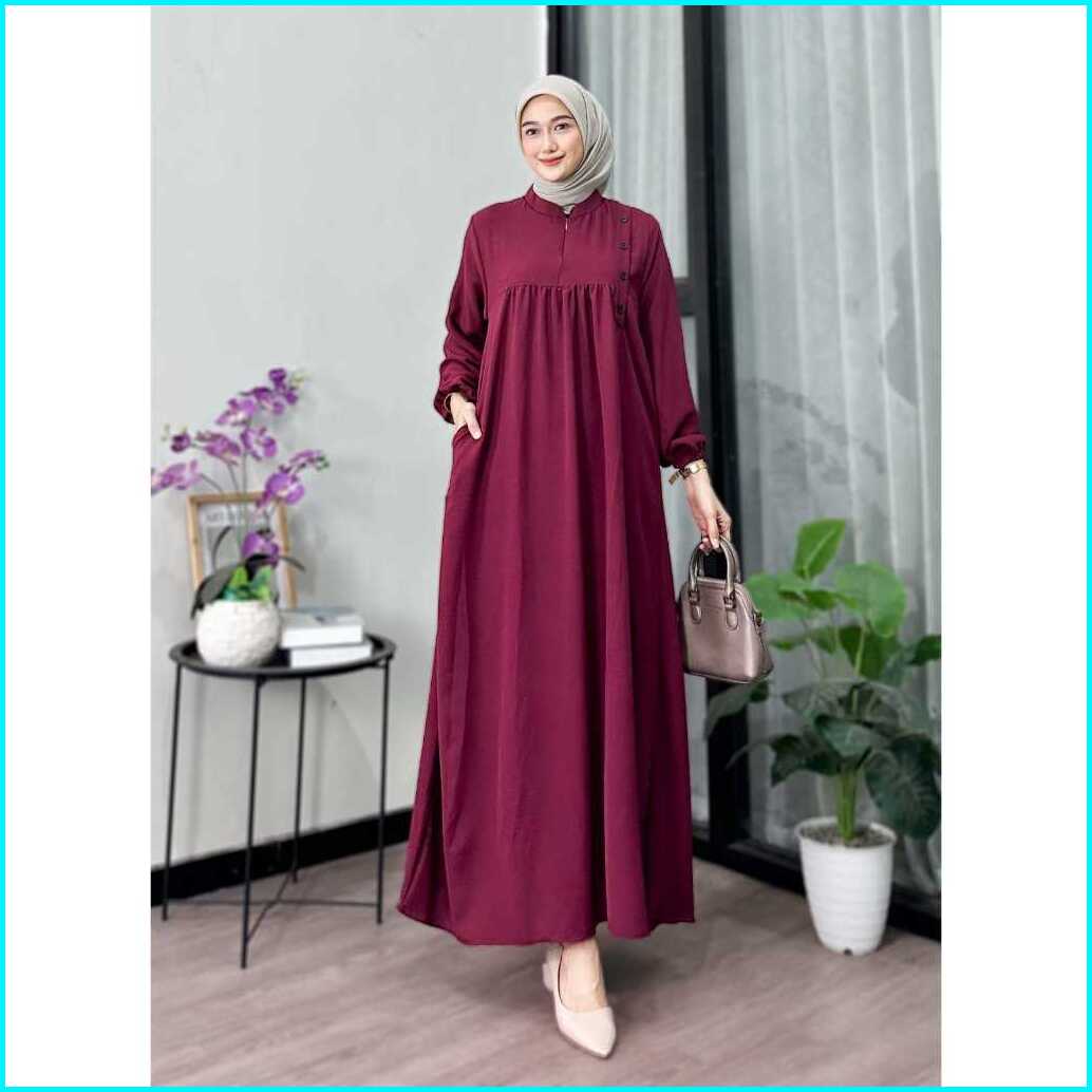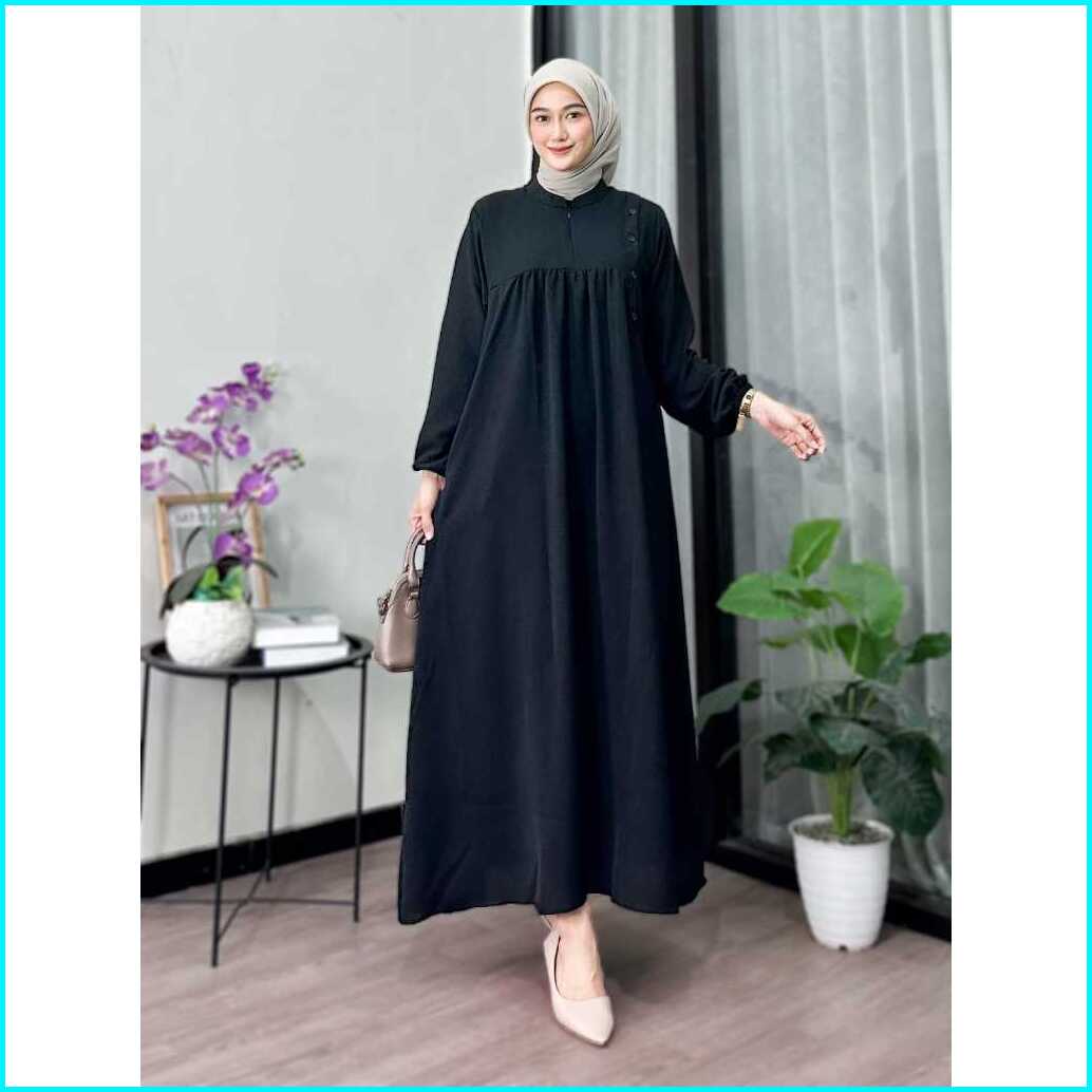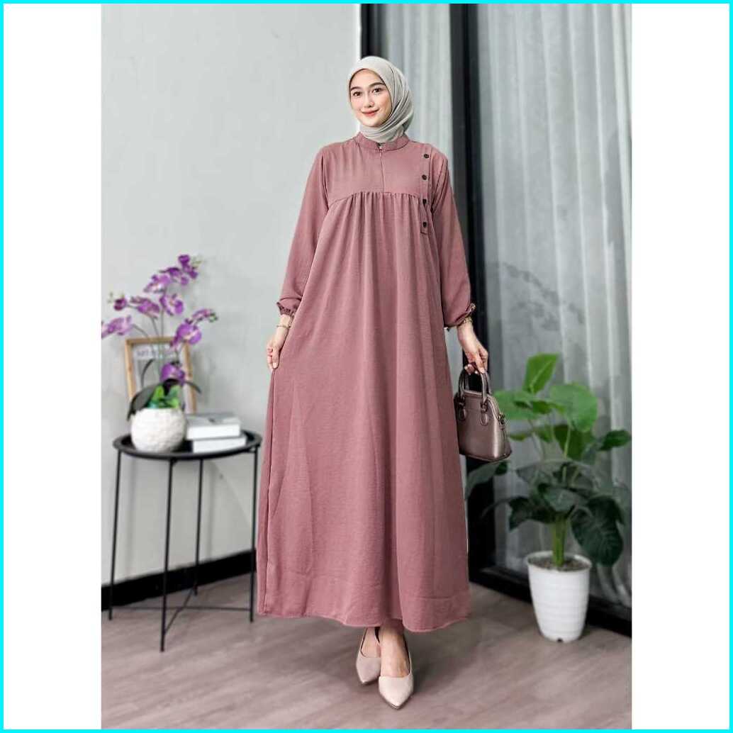 Mazayya Dress Gamis Muslim Cringkle Airflow Terbaru Polos Gamis Wanita Muslim Modern Kekinian Premium