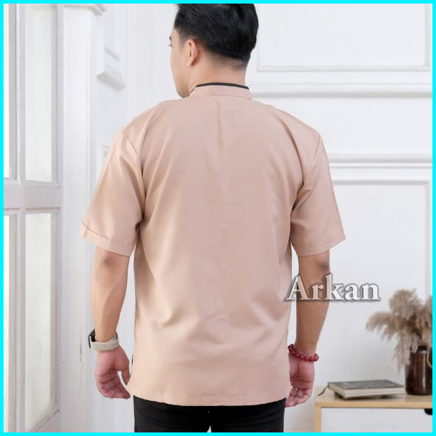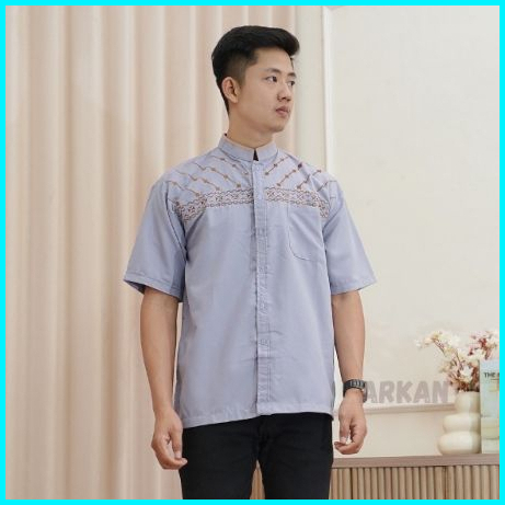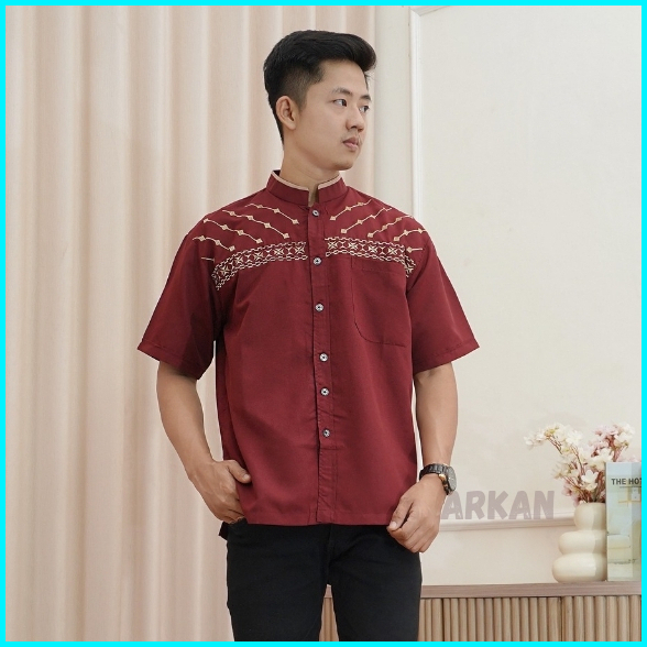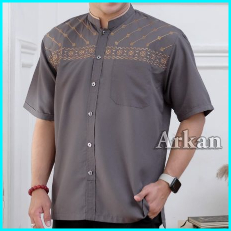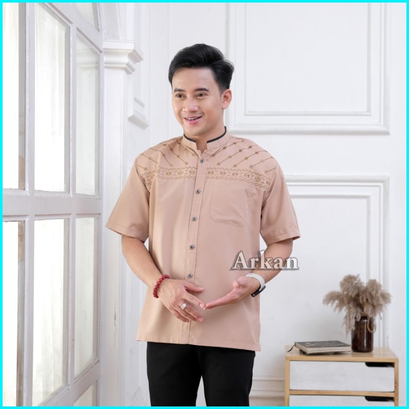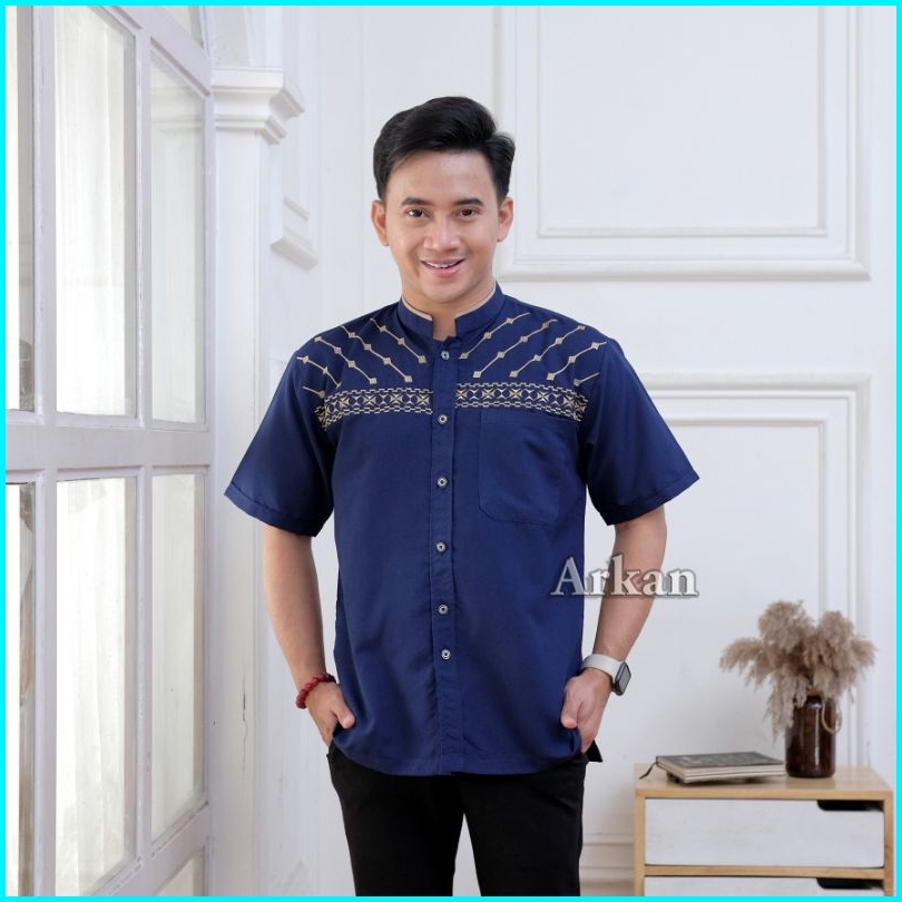 Baju Koko Muslim Dewasa Arkan Bahan Vito Signature Premium Motif Bordir Kemeja Pria Lengan Pendek