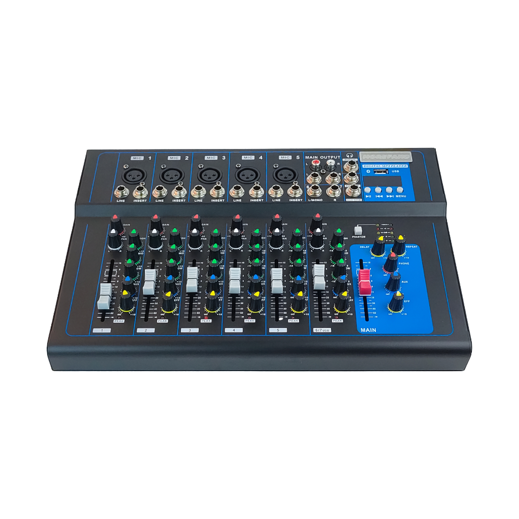 Mixer Audio 7-CH mendukung USB/Electro Bluetooth 48v Phantom power DJ Audio Mixer, Game Mixer Audio
