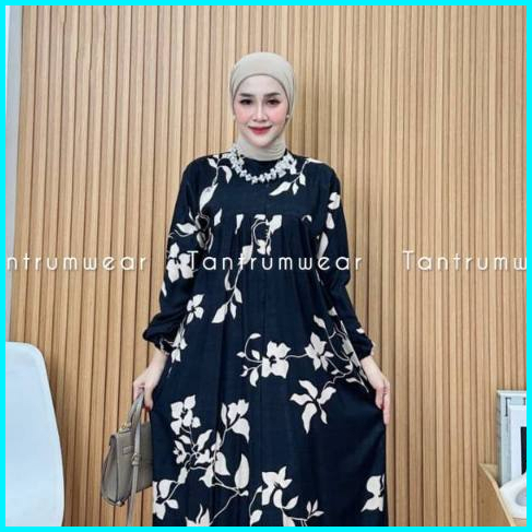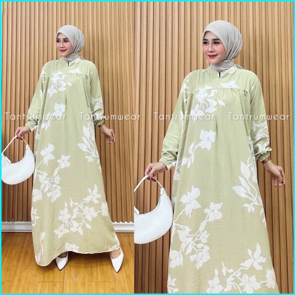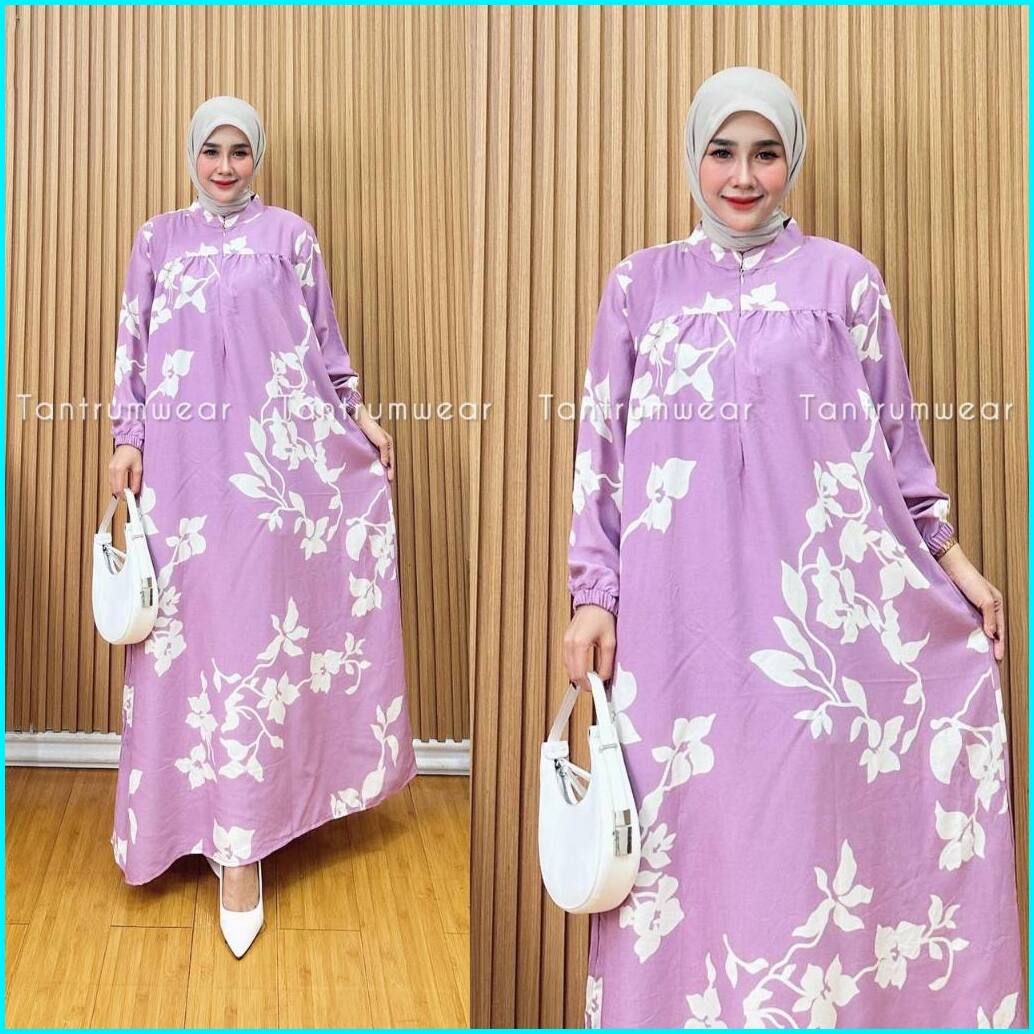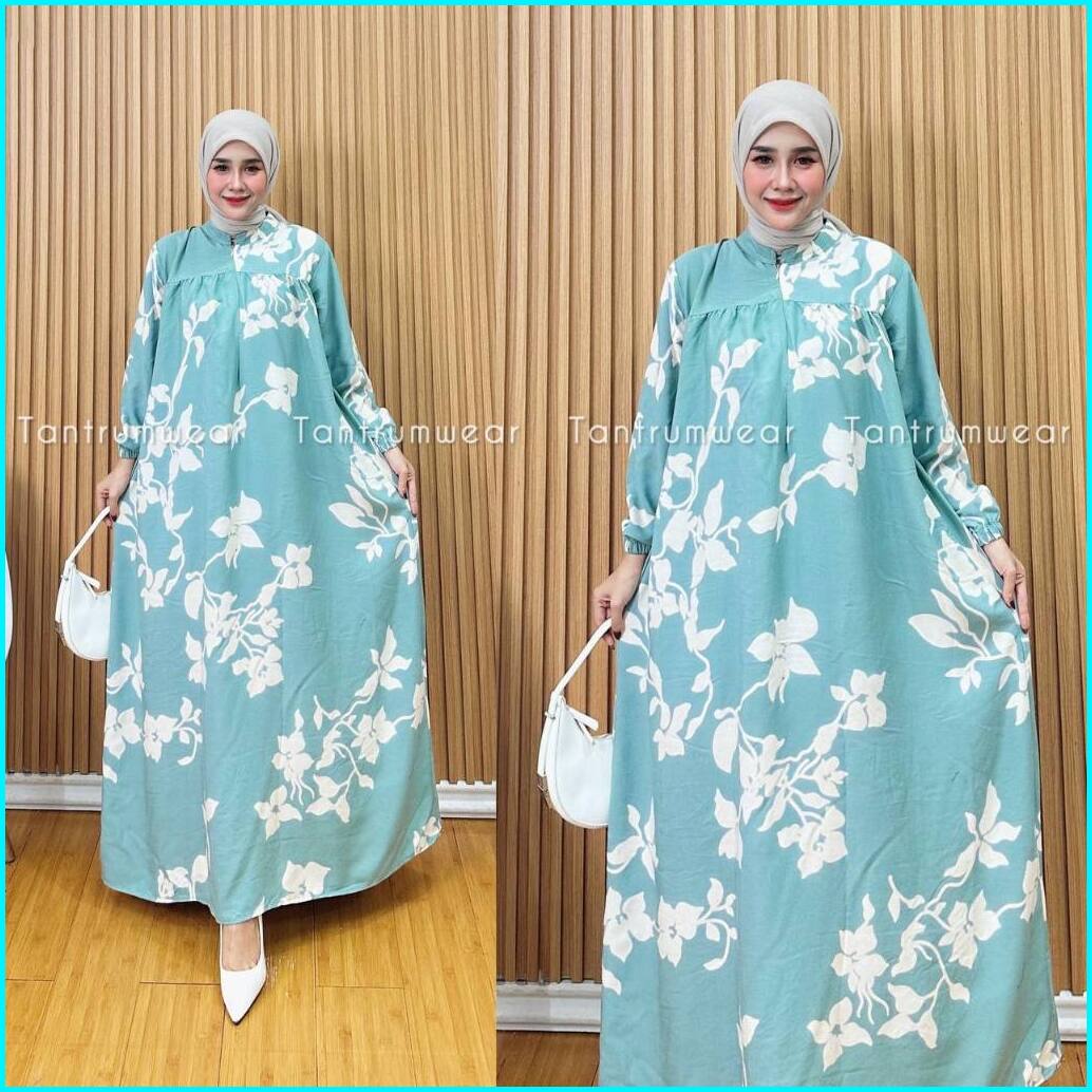 Gamis Rayon Premium Motif Flower Ukuran Jumbo.