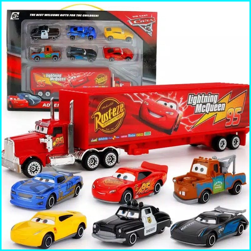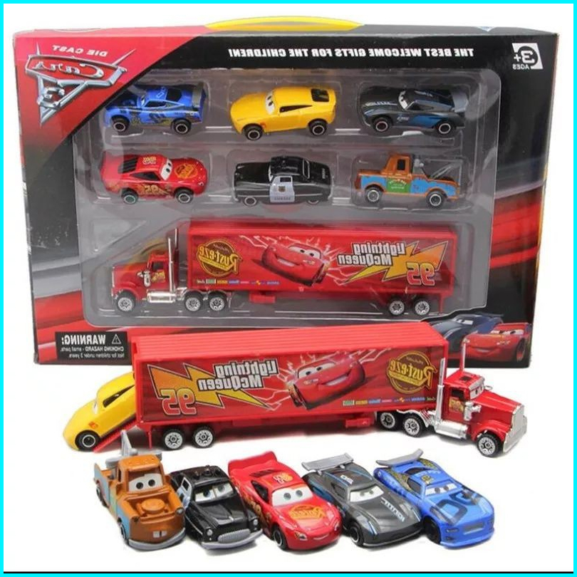 Cars 3 Mcqueen Truck Set 7 Pcs No.6888-k1 Mainan Mobil Baterai Cars Merah Dan Biru No.777-1