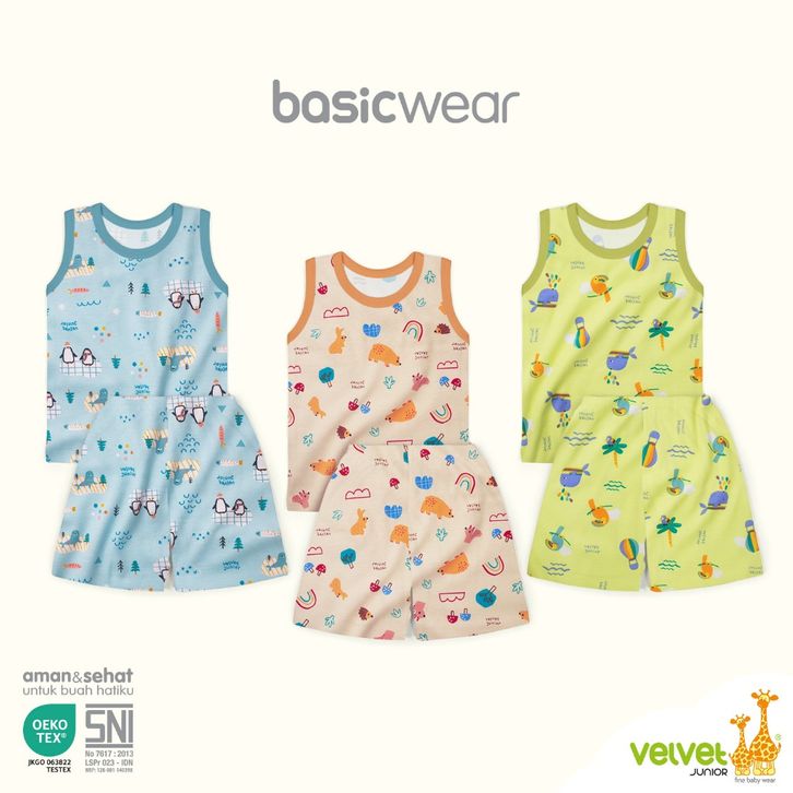 TERBARU || 3Pcs Setelan Velvet Junior KUTUNG S.M.L.XL.XXL | Kaos Bayi Lekbong | Tanpa Lengan .