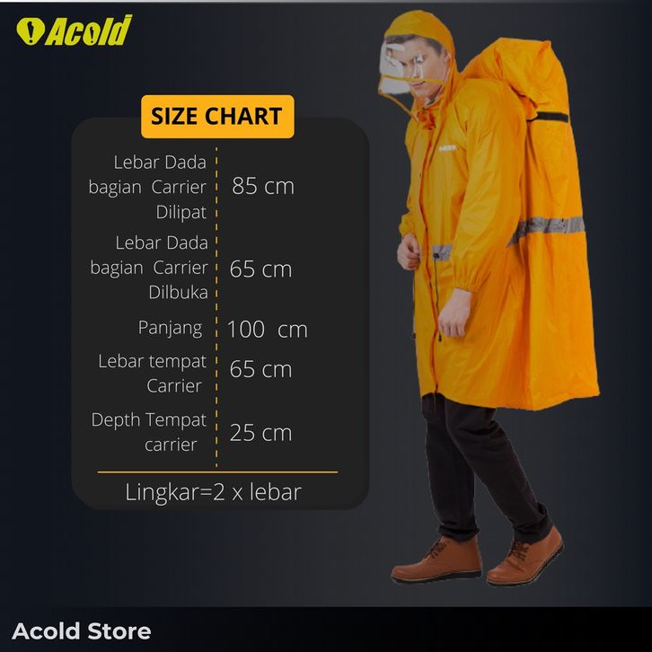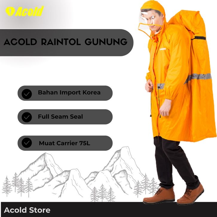 Jas Hujan ACOLD RAINTOL GUNUNG Raincoat Pendaki Mantel Ujan MANTl Udan Rainwear Tas Carrier 75 Liter Poncho Bahan Ringa