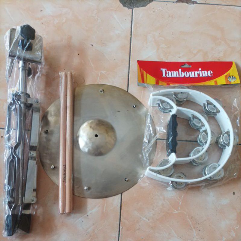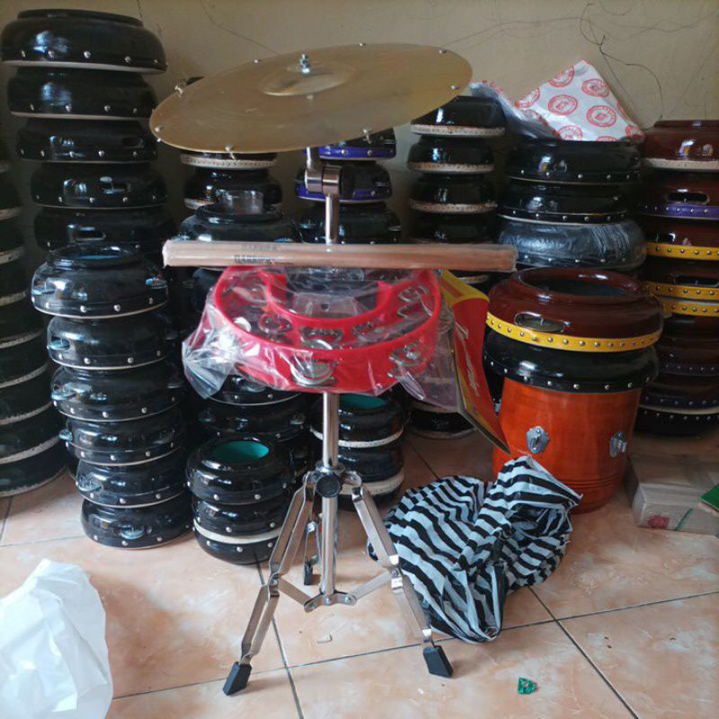 1Set Stand Markis Marawis Simbal Cymbal Tamborin Fiber Dobel