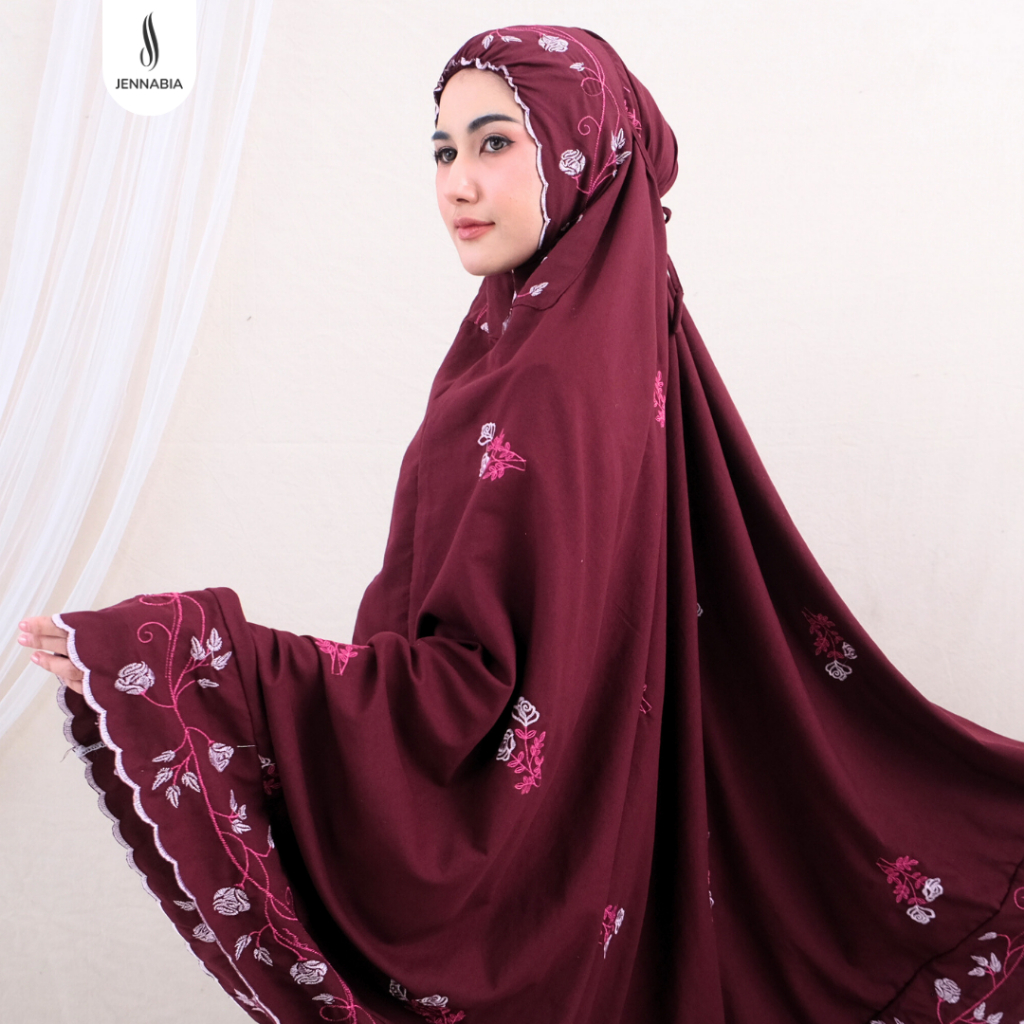 Mukena Dewasa Jumbo Katun Premium Bordir Renda Mewah Bunga Motif Mewah Modern Berkualitas Termurah Terbaru