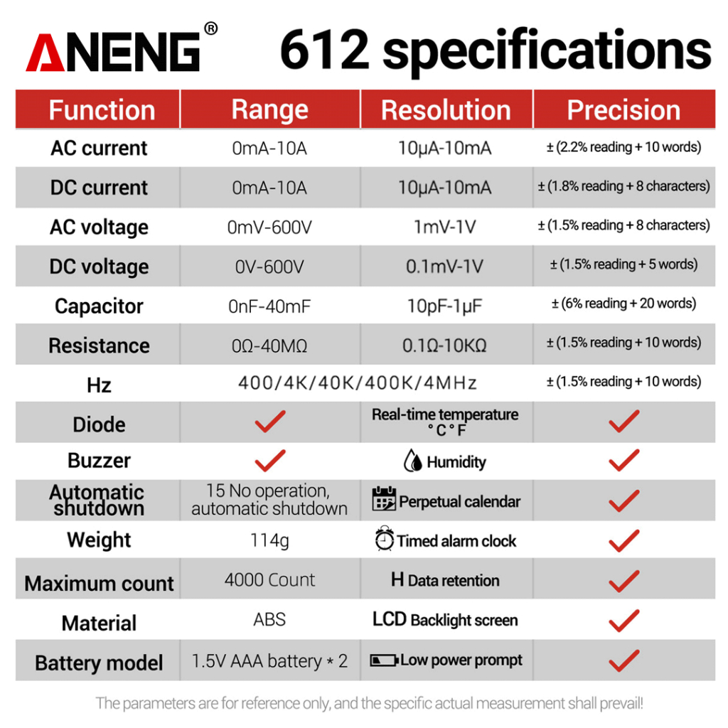 Aneng 612 Smart 3 in 1 Digital Multimeter 4000 Count Real-time Power-off Measuring Tester
