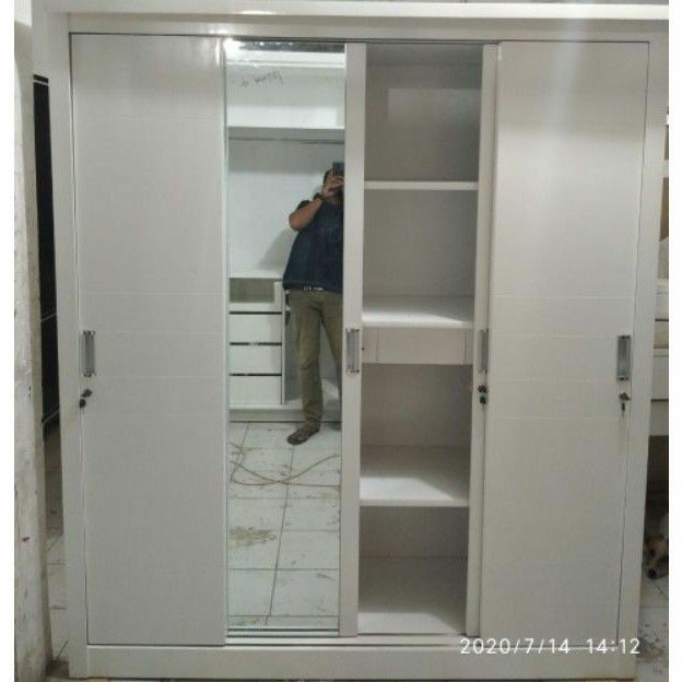 Lemari Pakaian 4 Pintu Sliding/Lemari Baju Sleding/Lemari Pintu Geser/Duco Minimalis