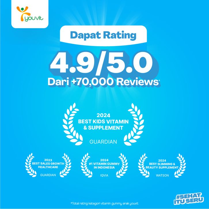vitamin anak Youvit Vitamin D3 dan Multivitamin Anak 30 Hari dengan Vitamin D3 600 IU, Ekstrak Yogurt, dan Sari Buah un