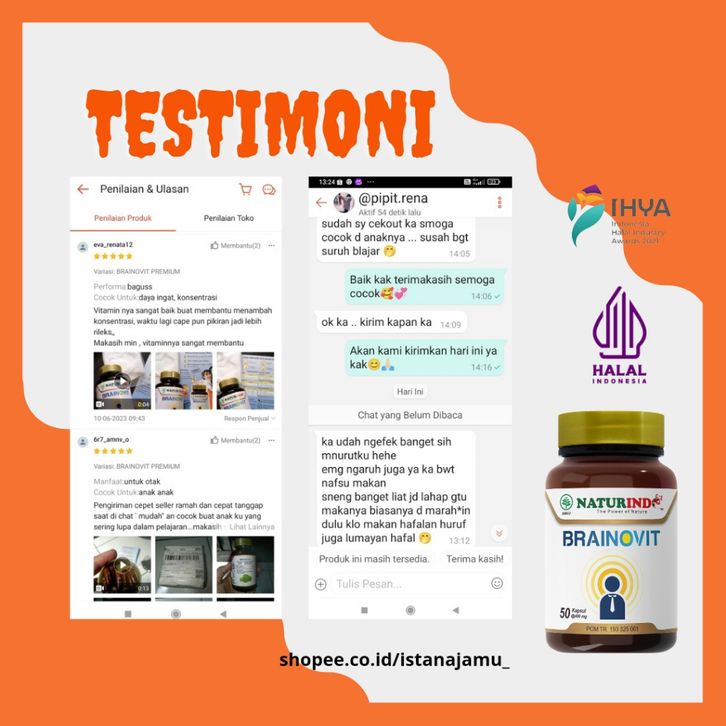 vitamin anak Suplemen Nutrisi Otak Daya Ingat Obat Pintar Alami Vitamin Otak Anak dan Dewasa Brainovit Naturindo
