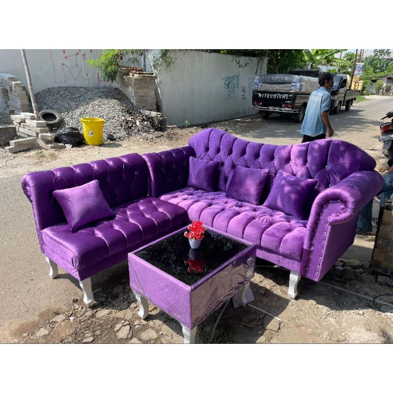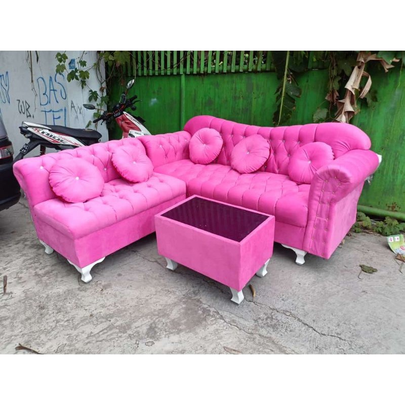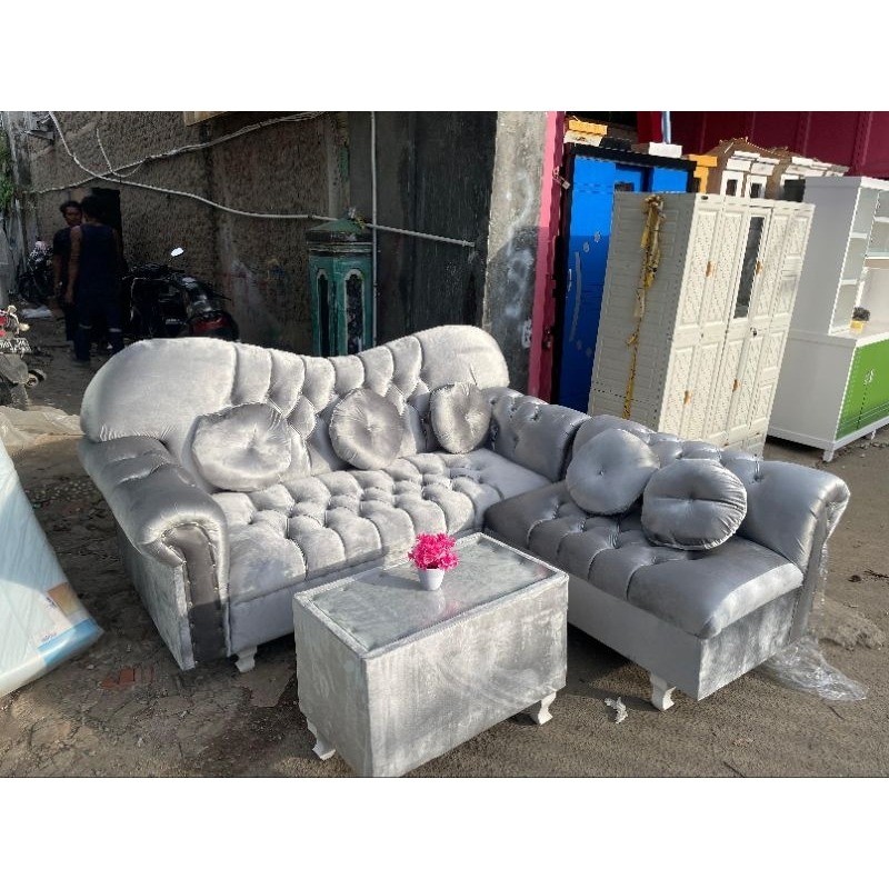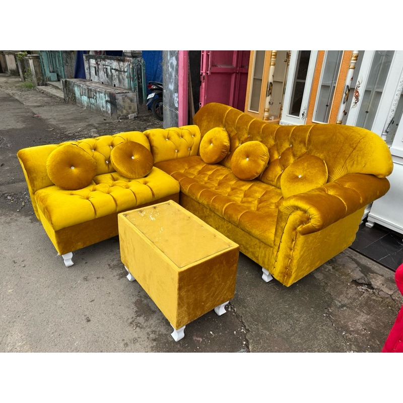 Sofa Ruang Tamu L Biola Bahan Foxy Kaki Kayu (Chat Admin Untuk Daerah Pengiriman)