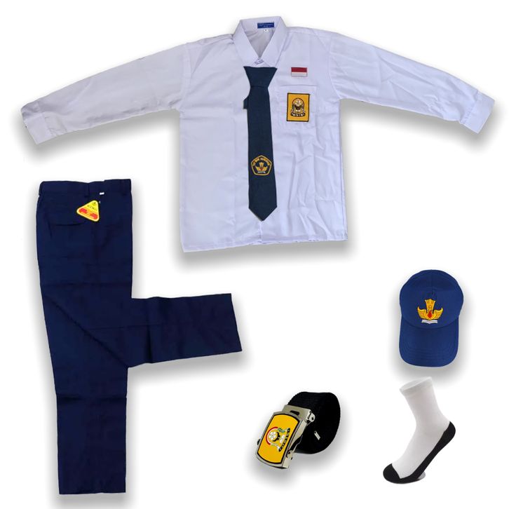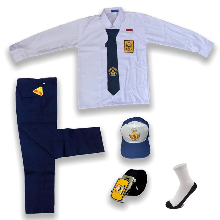 Setelan seragam smp putih biru lengan panjang celana panjang set lengkap laki