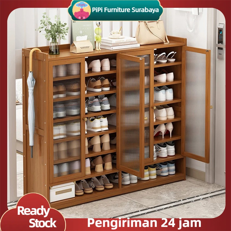 Pipi furniture Rak Sepatu Susun Tertutup Kayu Lemari Kaca Sepatu Tertutup Rak Sepatu Anti Debu