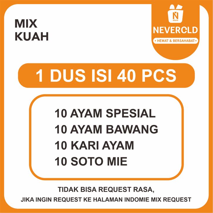 (IND) MIX REQUEST, (IND) MIX 8 VARIANT, (IND) GORENG , (IND) SOTO , (IND) AYAM SPESIAL, (IND) AYAM BAWANG , (IND) RENDANG, (IND) KARI AYAM , (IND) AYAM GEPREK, (IND) GORENG ACEH, (IND) SEBLAK HOT, (IND) POPMIE MIX , (IND) POPMIE AYAM, (IND) POPMIE SOTO, (IND) POPMIE BASO, (IND) POPMIE KARI , (IND) RAWON MERCON, POPMIE GORENG ORI, (IND) SOTO NAGIH, (IND) SOTO DOWER, (IND) MIX KUAH 4 VAR, (IND) GR, KR, ST, AB, (IND) GR, ST, (IND) GR, AB, (IND) GR, KR