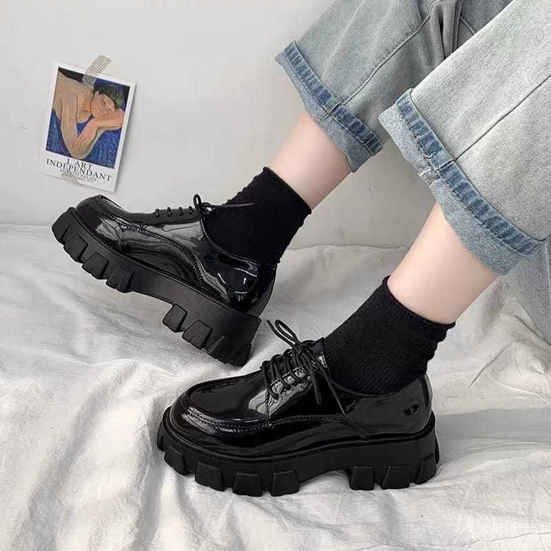 Sepatu Docmart Sneakers Boots Fashion Wanita Korea Style Black Glossy