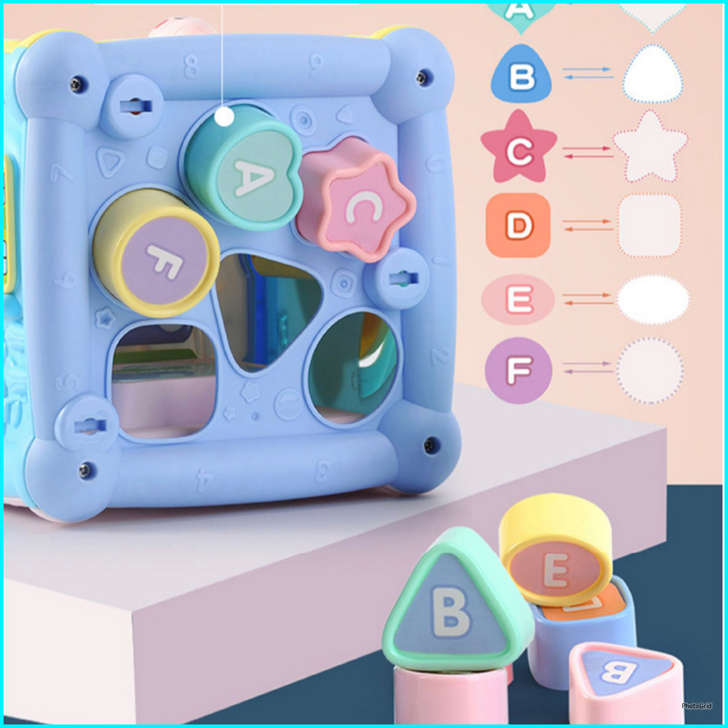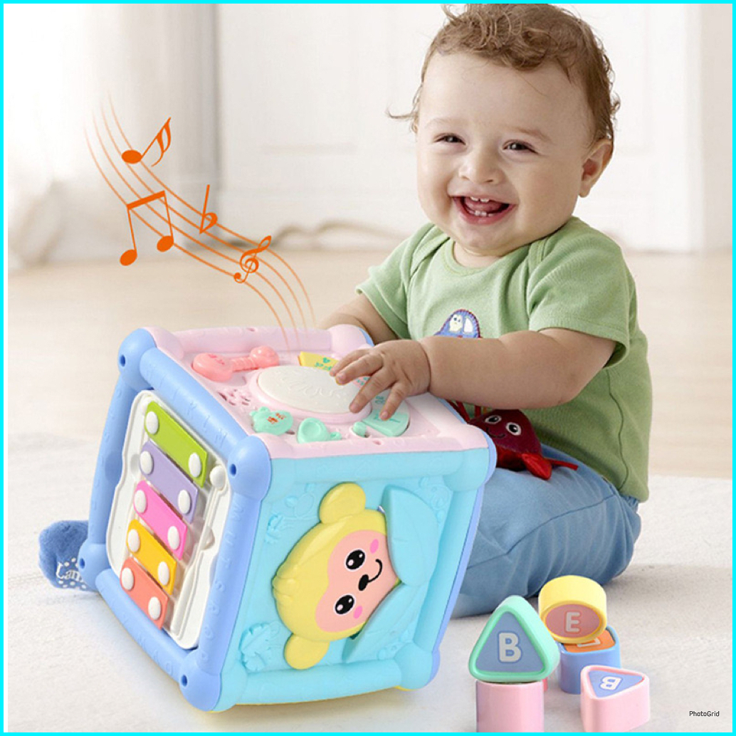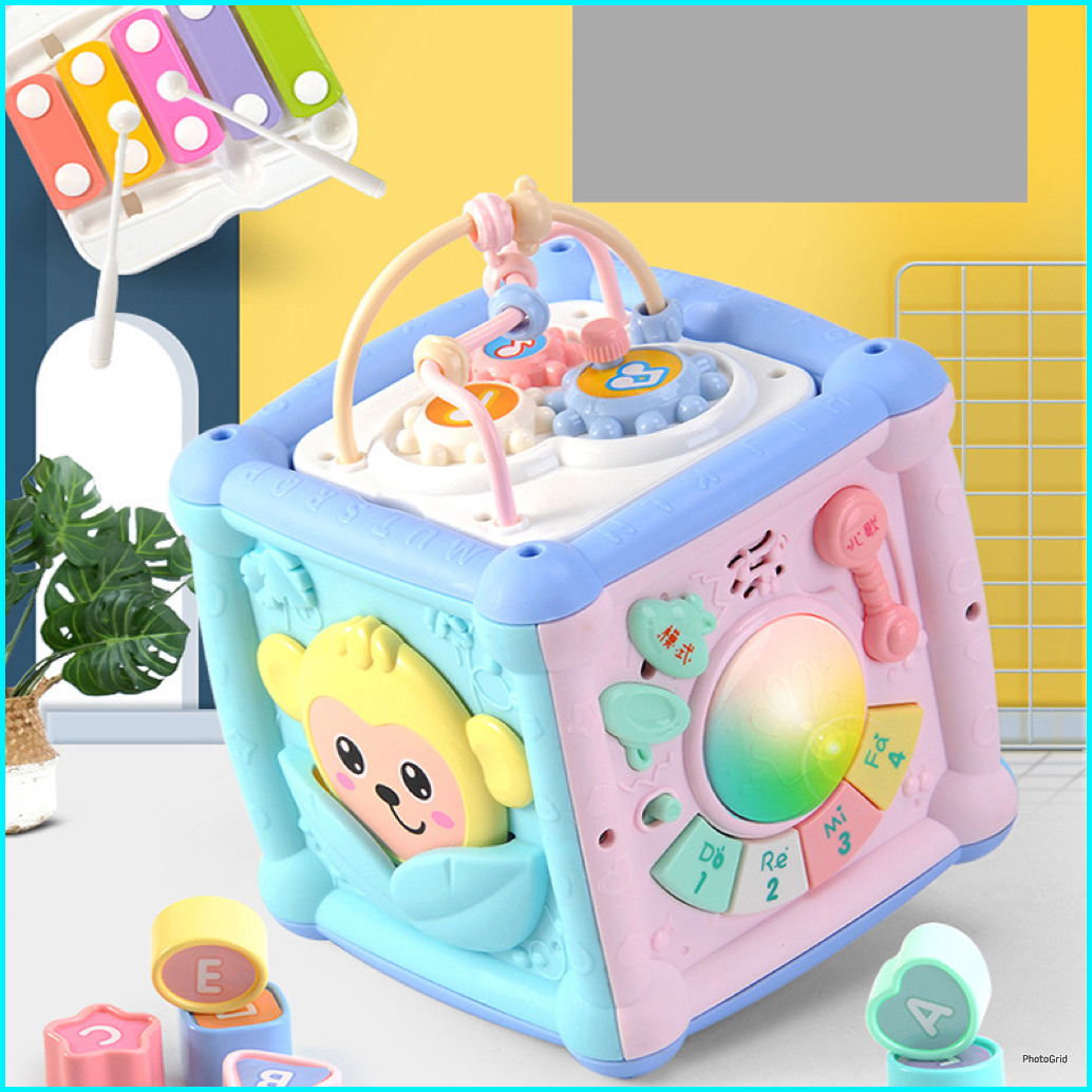 Happytoys.888 B89 7 In 1 Wisdom Busy Box Mainan Edukasi Anak Bayi Kotak Musik Baby Rattle Puzzle Abjad Sensorik Motorik