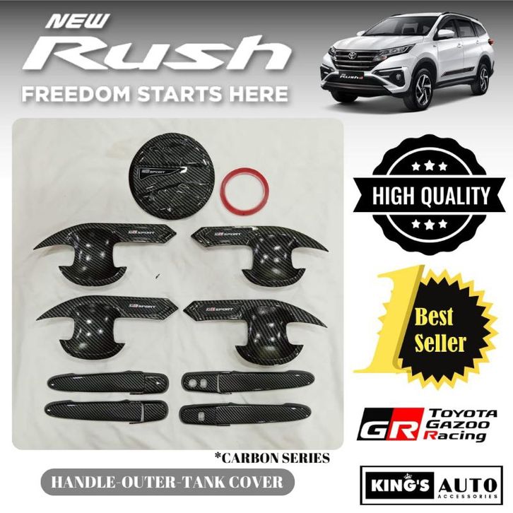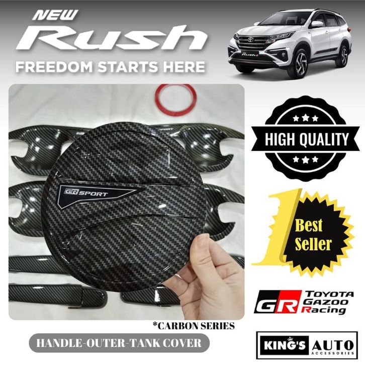 Paket Cover Handle Outer Pintu Tank cover Tutup Tangki Bensin Rush 2018 - 2024 Carbon Glossy