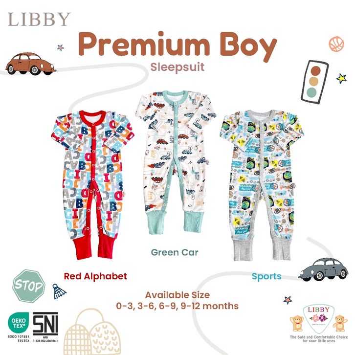 LIBBY Premium Baju Tidur Bayi Sleepsuit Bodysuit Romper Motif Boy 0-12 Bulan 1 Pcs/Pack
