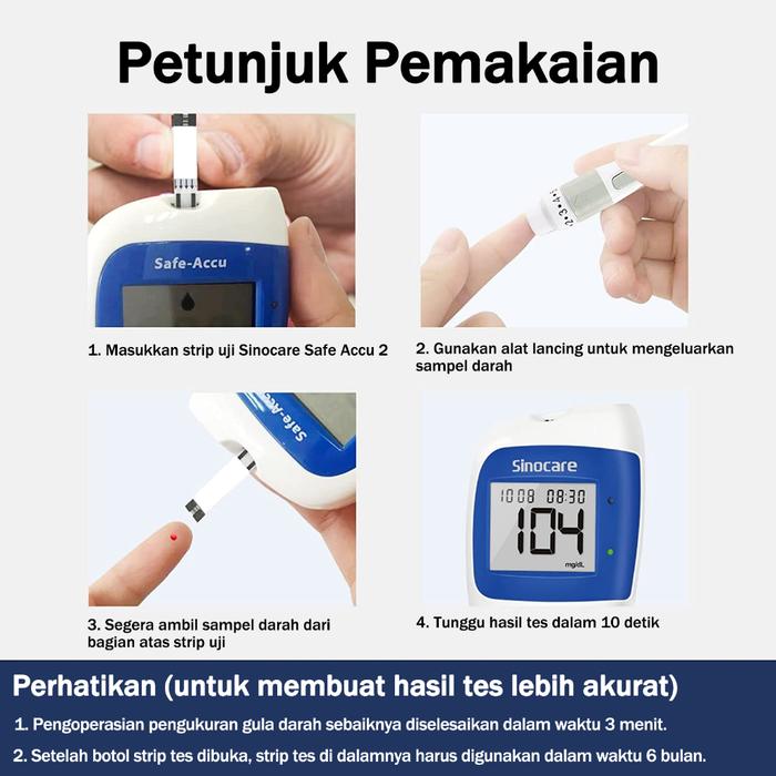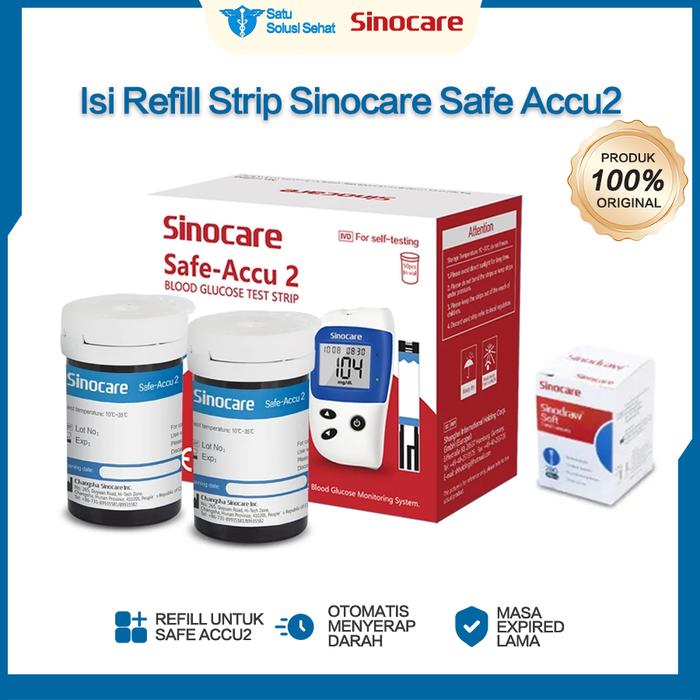 Sinocare Isi Refill Alat Cek Gula Darah Safe Accu2 Strip 50 pcs / 100 pcs BGM Strip