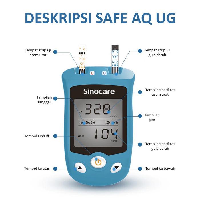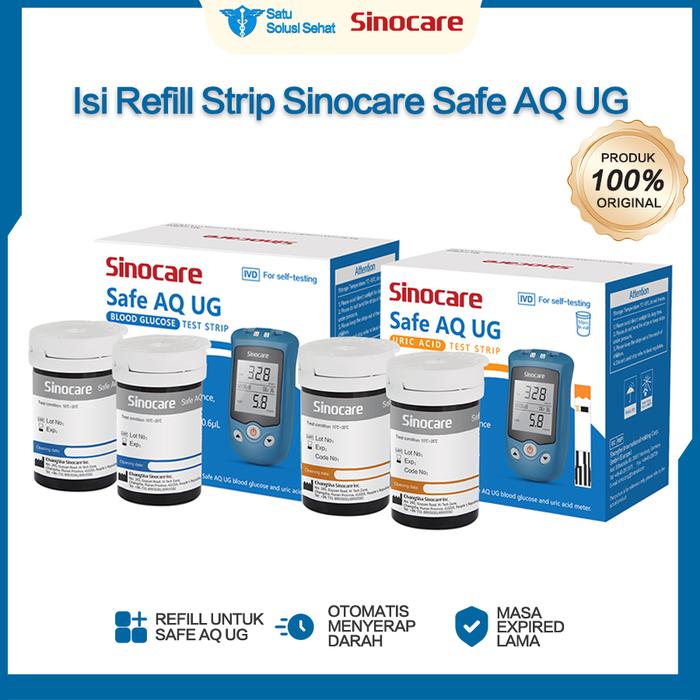 Sinocare Isi Refill Alat Cek 2 in 1 Safe AQ UG Strip (50 Strip Asam Urat / 50 Strip Gula Darah)