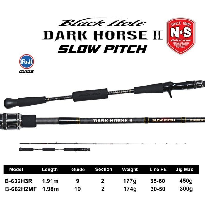 Joran Pancing Spinning NS BLACK HOLE DARK HORSE II SLOW PITCH carbon CTX Full Fuji Cocok Untuk Jigging - B-662H2MF