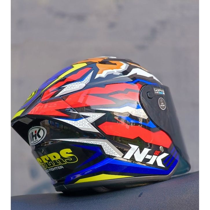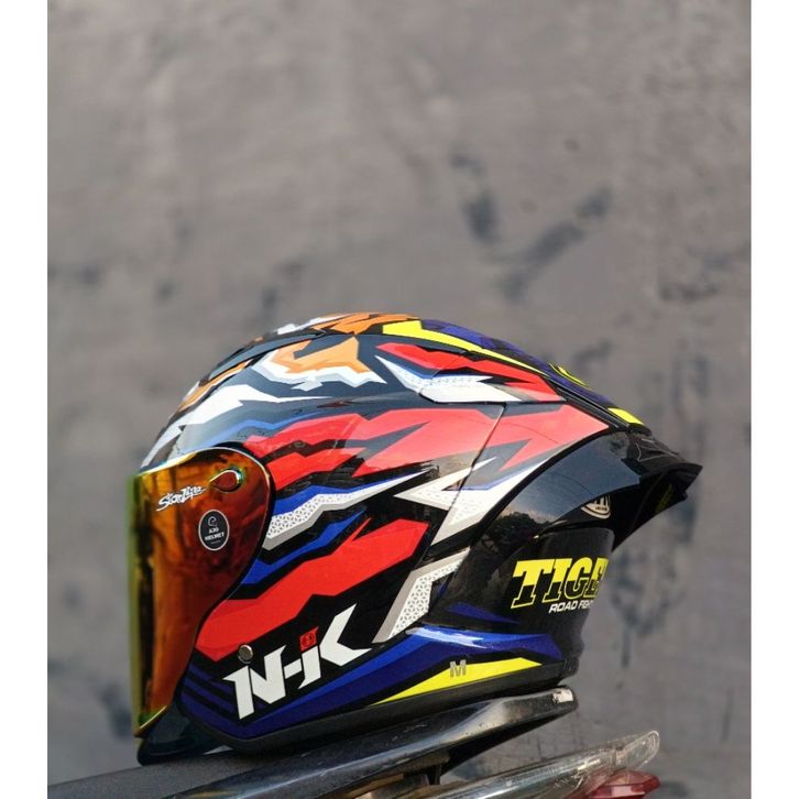 HELM NHK R1 ELITE MOTIF DAMOK#2 TIGER , PAKET GANTENG VENOM FLAT VISOR WITH SPOILER SINGLE VISOR SLOT INTERCOM ORIGINAL