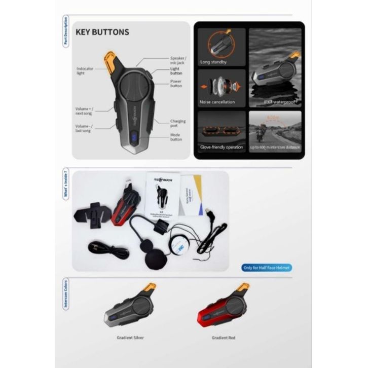 INTERCOM RETOUCH X3 ORIGINAL | BLUETOOTH HELMET SPEAKER INTERPHONE ORI
