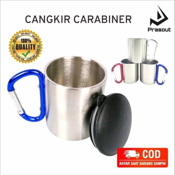 NEW Arrival Gelas Carabiner Tutup - Cangkir Mug 220ml Stainless Steel ocihc
