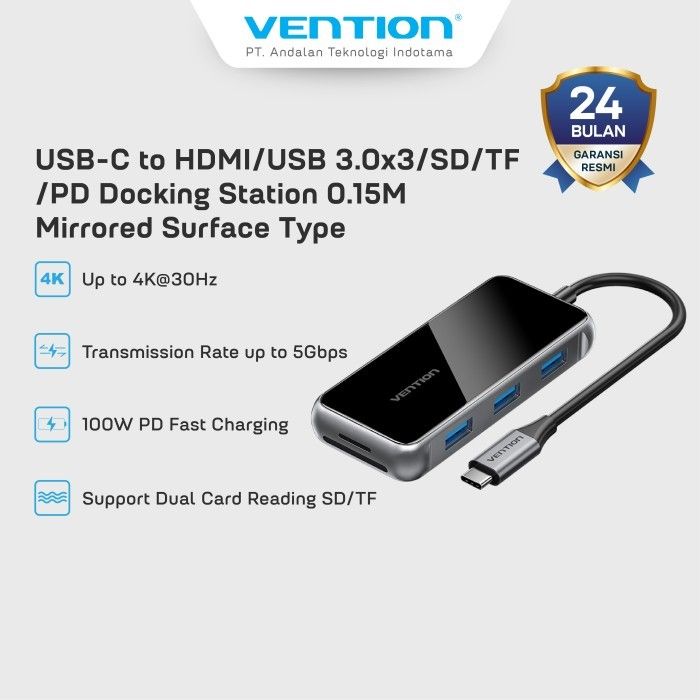 NEW Vention Hub Multiport 7in 1 Docking Station USB Type C To HDMI/USB 3.0 2.0 PD 100W Acrylic Type - TFM esesmn