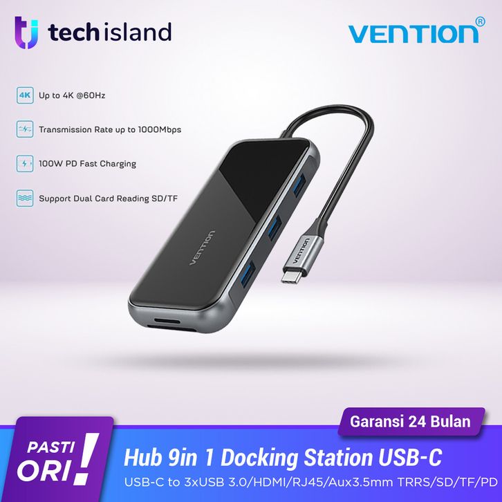 TERBARU Vention Hub Multiport 9in 1 Docking Station USB-C to HDMI TRRS VGA PD 100W Acrylic TFL usakc