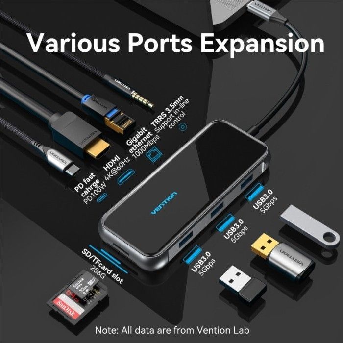 NEW Vention Hub Multiport 9in 1 Docking Station USB Type C To HDMI TRRS VGA PD 100W Acrylic Type - TFL ubedc