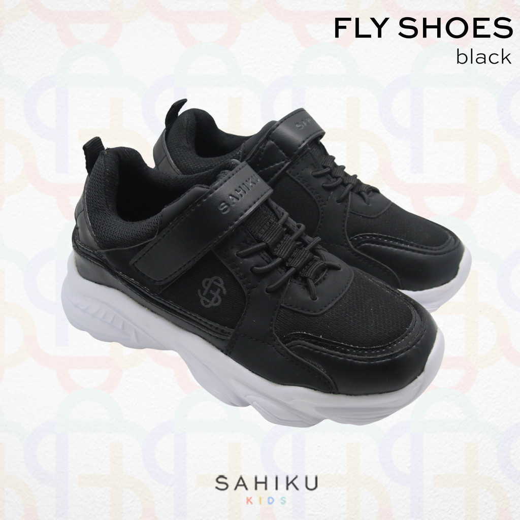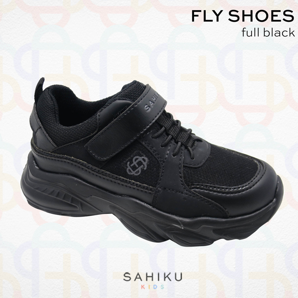 SAHIKU - Fly Kids Sepatu Sekolah Hitam Anak I Back to School Shoes Black Laki Laki Perempuan Unisex