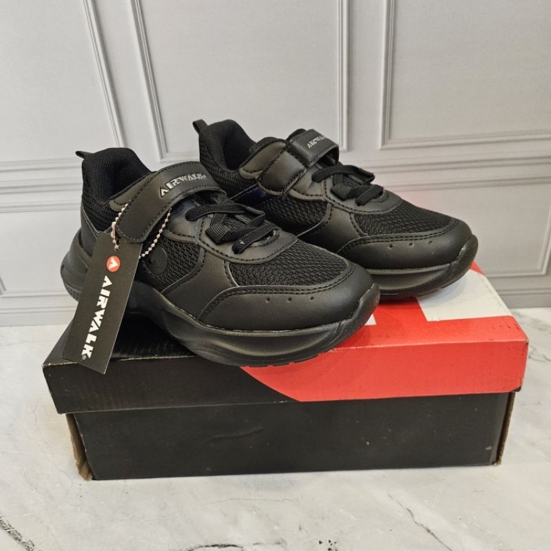 [SIZE 30-34] SEPATU SEKOLAH AIRWALK ANAK ORIGINAL SPORTS STATION LAKI LAKI PEREMPUAN BOY GIRL hitam jalan jalan sd tk black shoes fashion