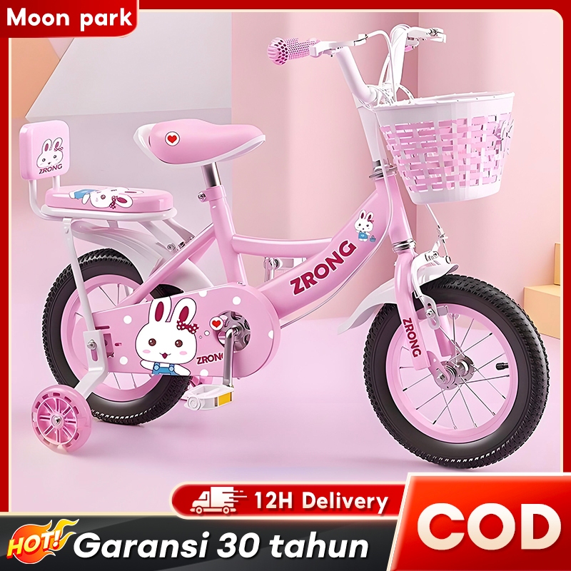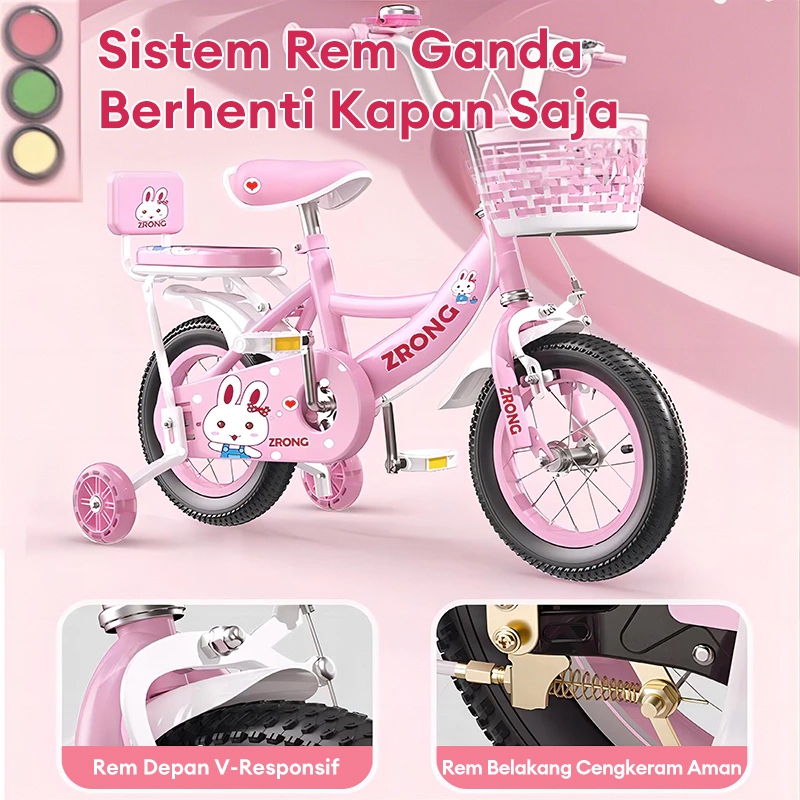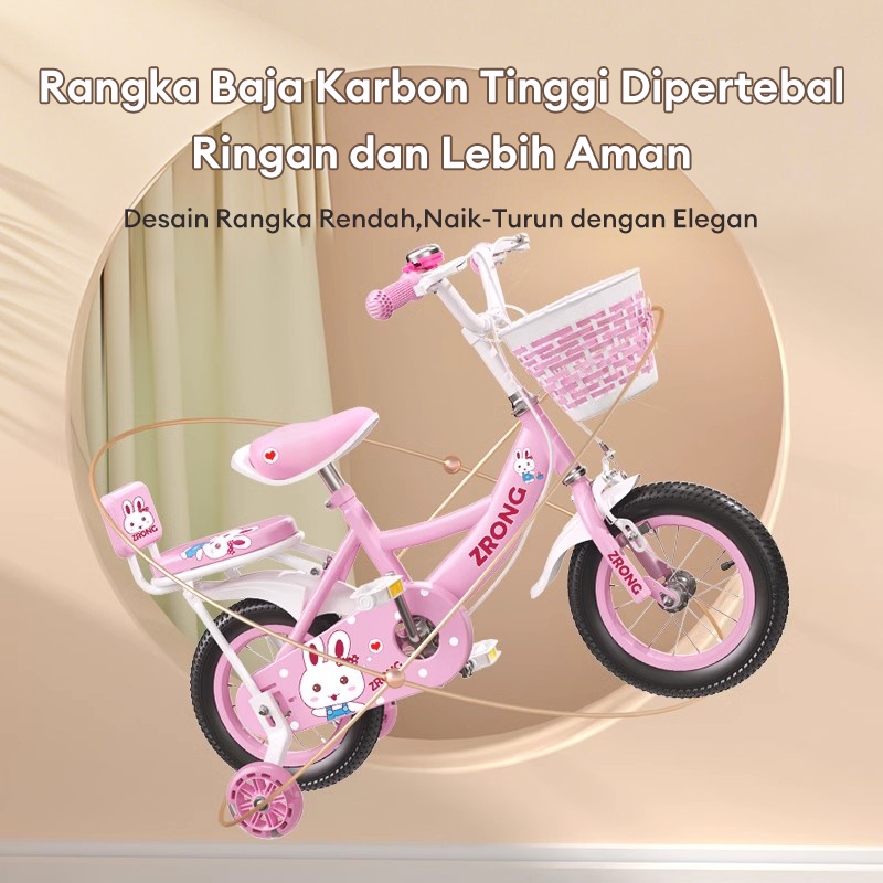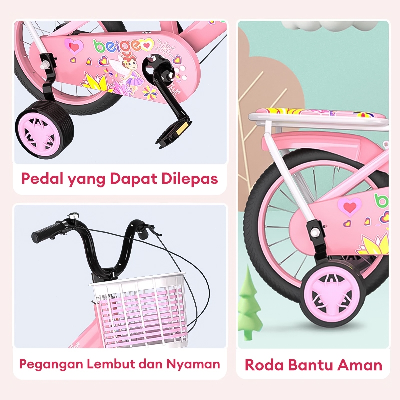 [Beige] Sepeda Anak 12&16 Inch - Kids Bike with Training Wheels, Adjustable Seat, Lightweight Frame