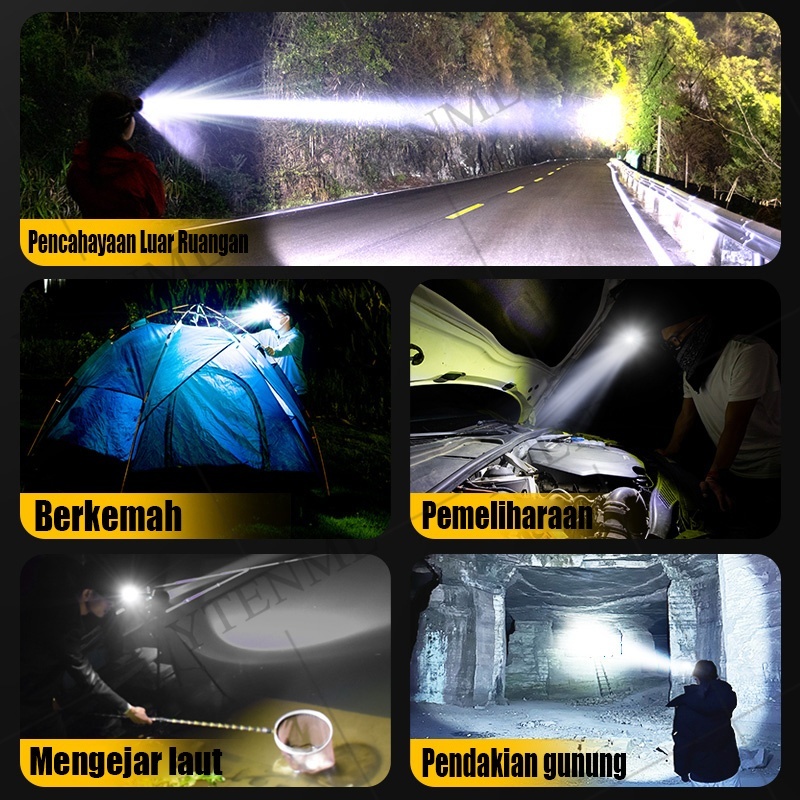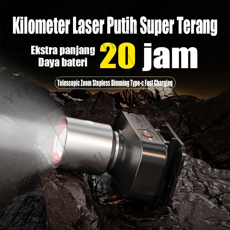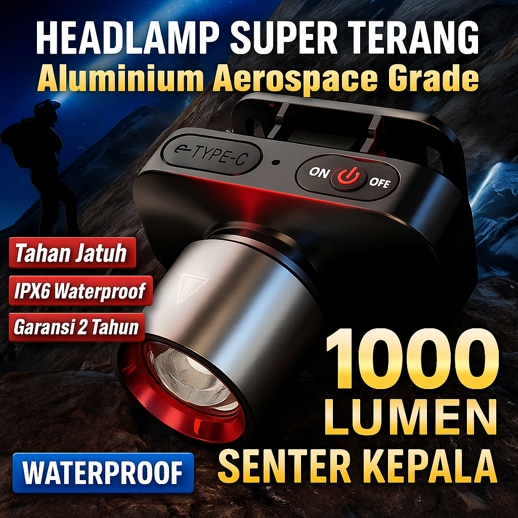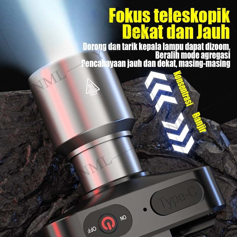 Senter Kepala LED Rechargeable 3000mAh | Zoomable | 3 Mode Cahaya | Type-C | Tahan 30 Jam | Waterproof