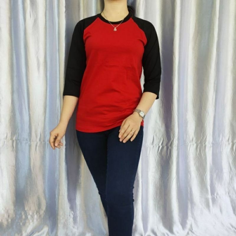 KAOS POLOS REGLAN PRIA WANITA (UNISEX) LENGAN 3/4 UK M L XL XXL