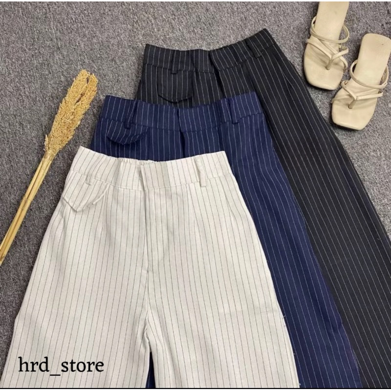 ORO PANTS STRIPE BANGKOK HIGH WAIST JUMBO KOREAN STYLE KATUN SEMI WOLL M L XL XXL