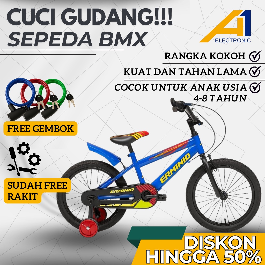 [Cuci Gudang] Sepeda BMX Anak laki-laki Erminio Spoke Ban Lebar Jari-Jari Ukuran 18 inch anak usia 4 - 8 Tahun - Free Gembok & Rakit
