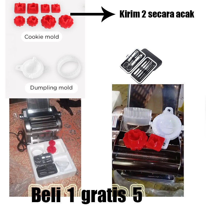 (Beli 1 gratis 4 hadiah)Mesin mie listrik gilingan mie listrik otomatis 135W Kue bawang Listrik Pembuat Mie stainless pa