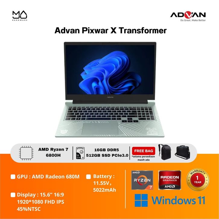 Laptop Advan Pixwar X Transformer AMD Ryzen 7 6800H 16GB SSD 512GB