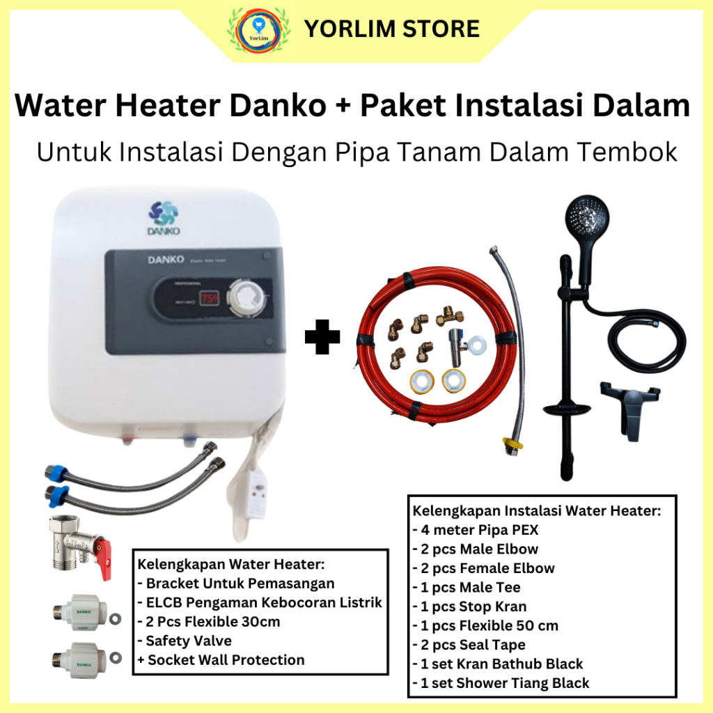 Paket Water Heater Listrik Danko 15L Dan 30L + Instalasi Air Panas Dingin + Kran Shower Untuk Istlasai Dalam Atau Luar T