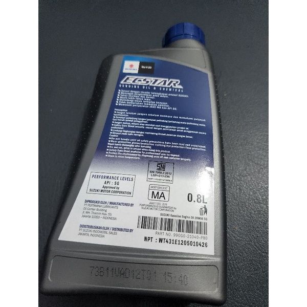 Oli Mesin Motor SGO Ecstar 4T 4 Tak Suzuki Geunine Oil 20W-50 800ml 0.8L