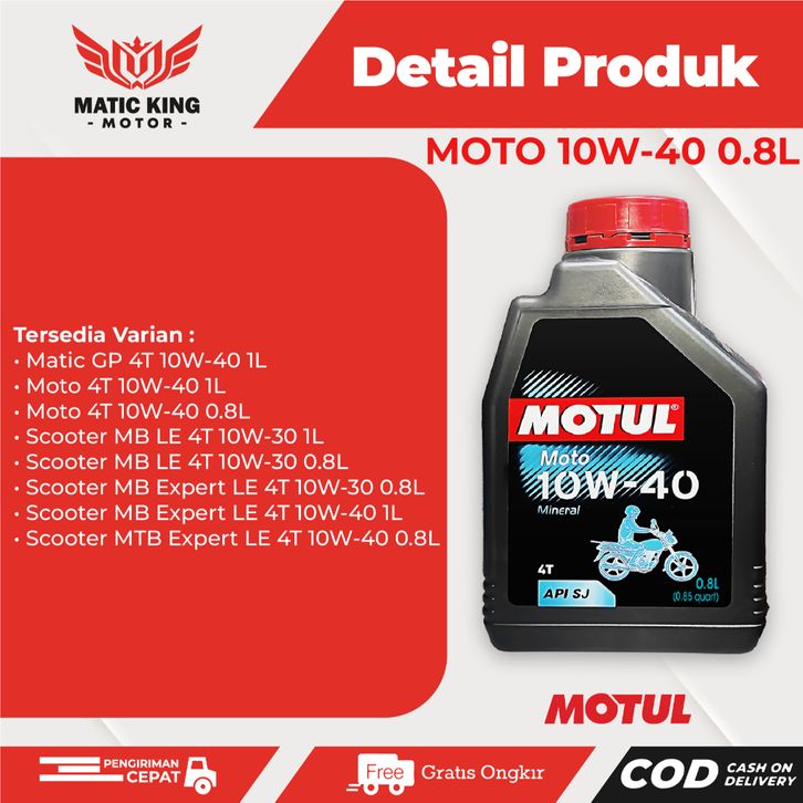 Motul Oli Mesin Moto 10W-40 4T JASO MA2 API SJ 800 ml
