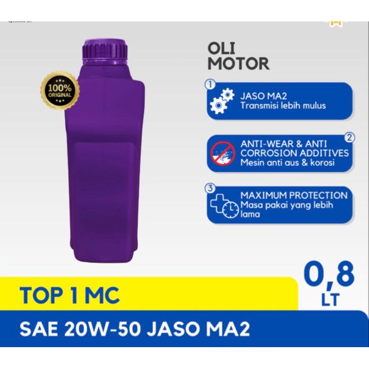 OLI MOTOR TOP ONE TOP 1 MC 0,8 LITER 20W-50 JASO MA2 ORIGINAL 100PERSEN supra jupiter vega revo