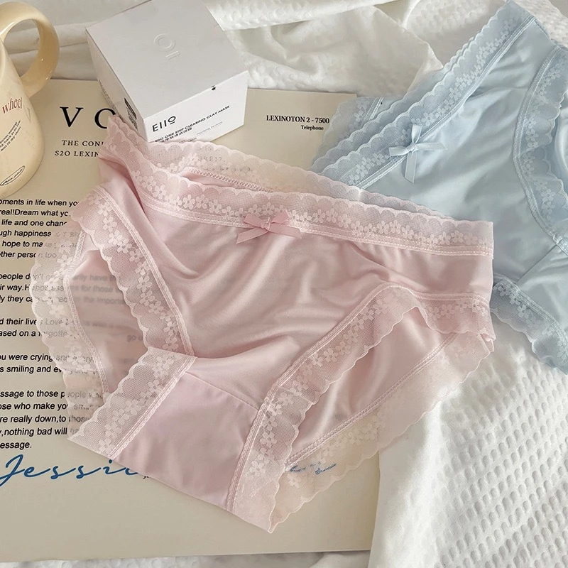 CD/Celana Dalam Wanita Renda Transparan Celana Dalam CD Wanita Bahan Sutra Motif Pita Polos Pinggiran Lace Halus Dingin