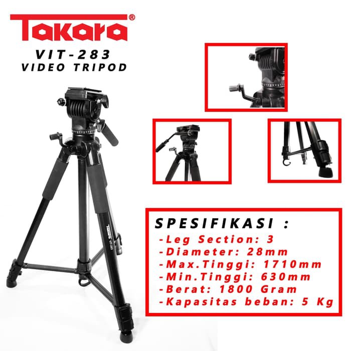 Takara Vit-283 Fluid Head Video Tripod Untuk Kamera Camcorder Dslr Hp