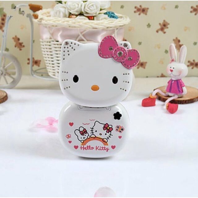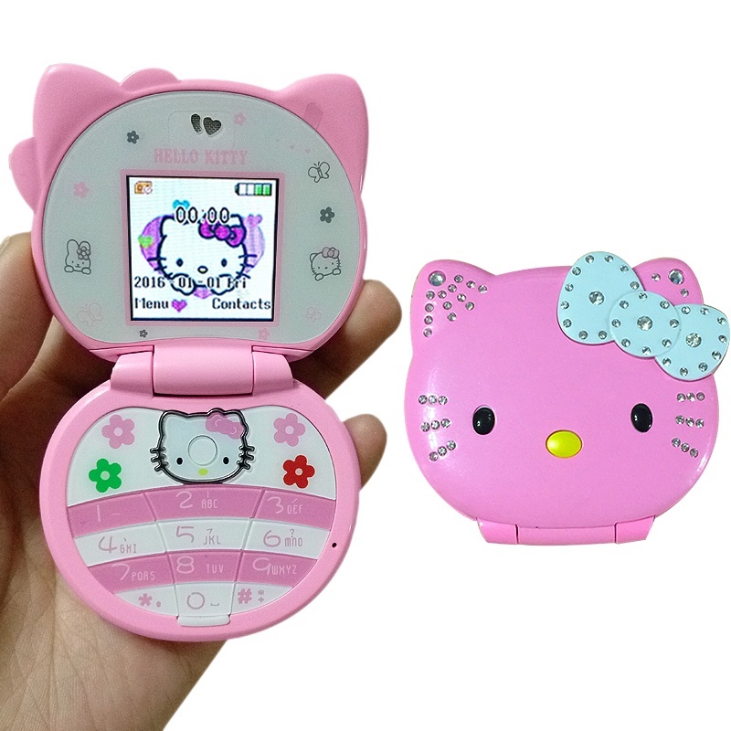 HP Lucu Mini Hello Kitty Girl Phone K688 Quad Band Flip Cartoon Mobile Phone Unlocked Anak Mini Dual Sim