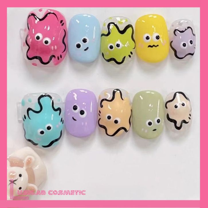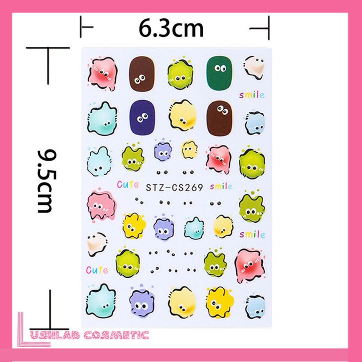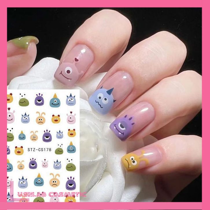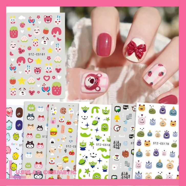 Stiker Kuku 5D Kartun Cartoon Jelly Lucu Sticker Nail Campur Emoji Monster Dekorasi Nail Art Lotso Sanrio Alien Melody