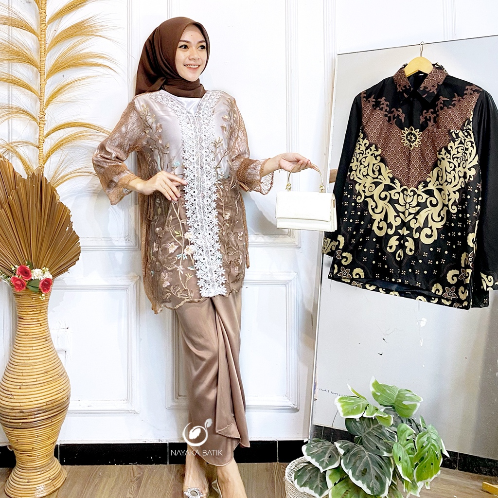 NAYAKA BATIK FURING SERIES - Baju Couple Pasangan Lamaran Kondangan Mewah One Set Maiza Tulle Gardenia