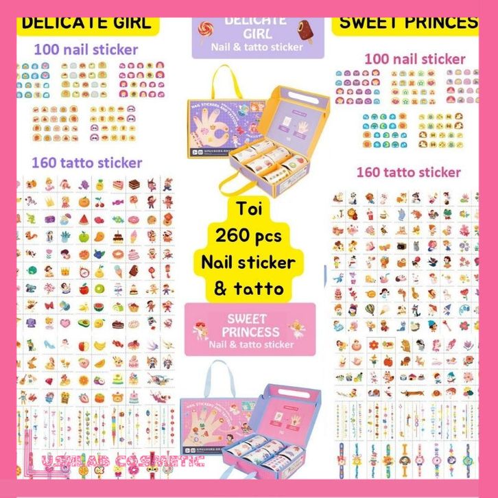 Tato Sticker kuku anak PREMIUM Nail tattoo box mainan tato stiker kuku anak Sticker kuku